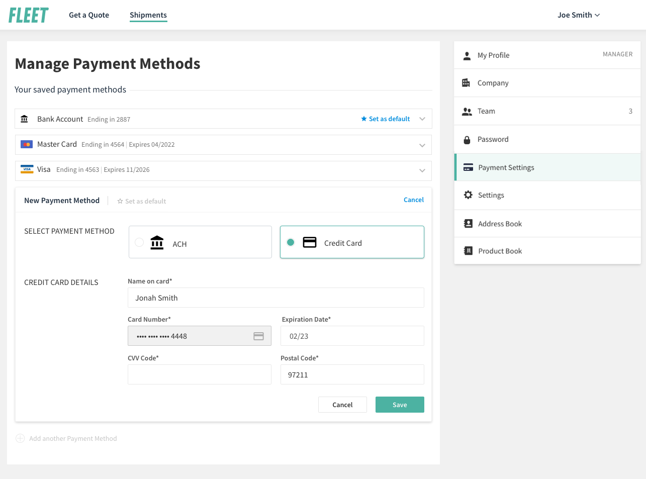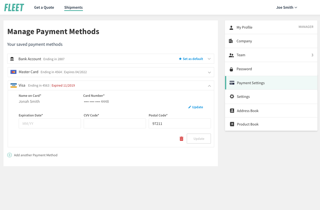 Manage Payment Methods
